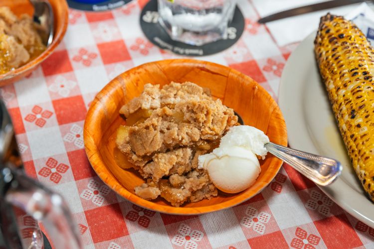 Our cobbler is baked fresh in Trail Dust Town. Ask your server for tonight’s variety. Served warm with vanilla ice cream.