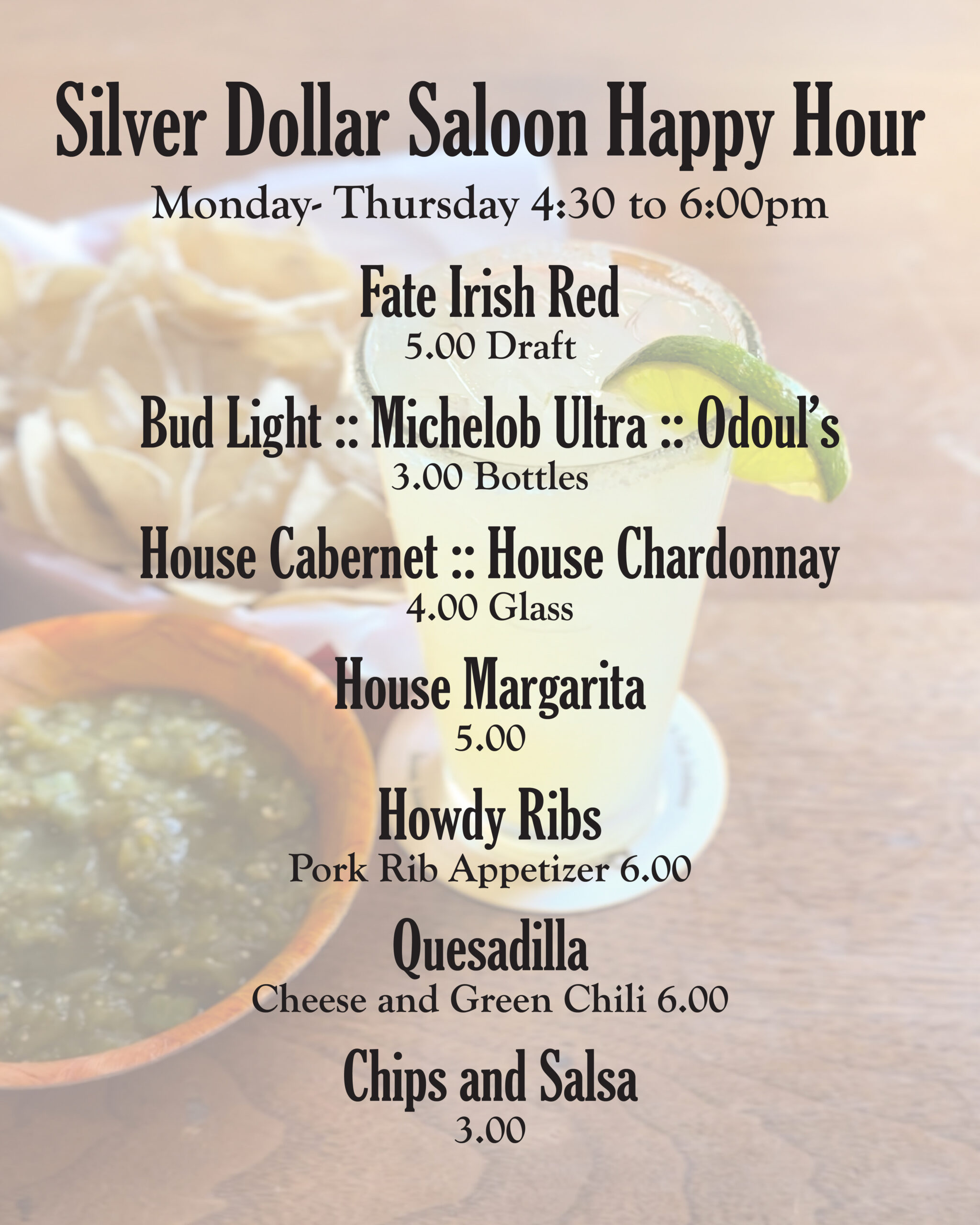 Monday – Thursday: 5 – 9PM